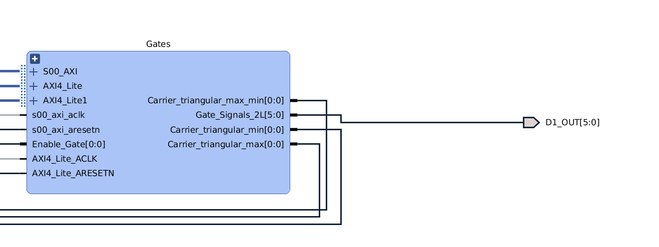 The I/O ports D1_OUT[0..5] are routed to D1.