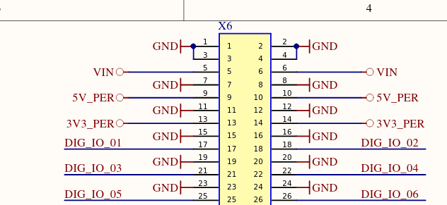 The port name corresponds the signal name in the carrier board schematic and is routed to the digital and analog adapter card slots D1..D5 (X6) and A1..A3 (X5).